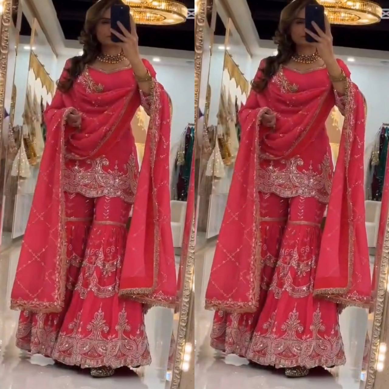 Designer Heavy Embroidery Partywear Sharara Set
